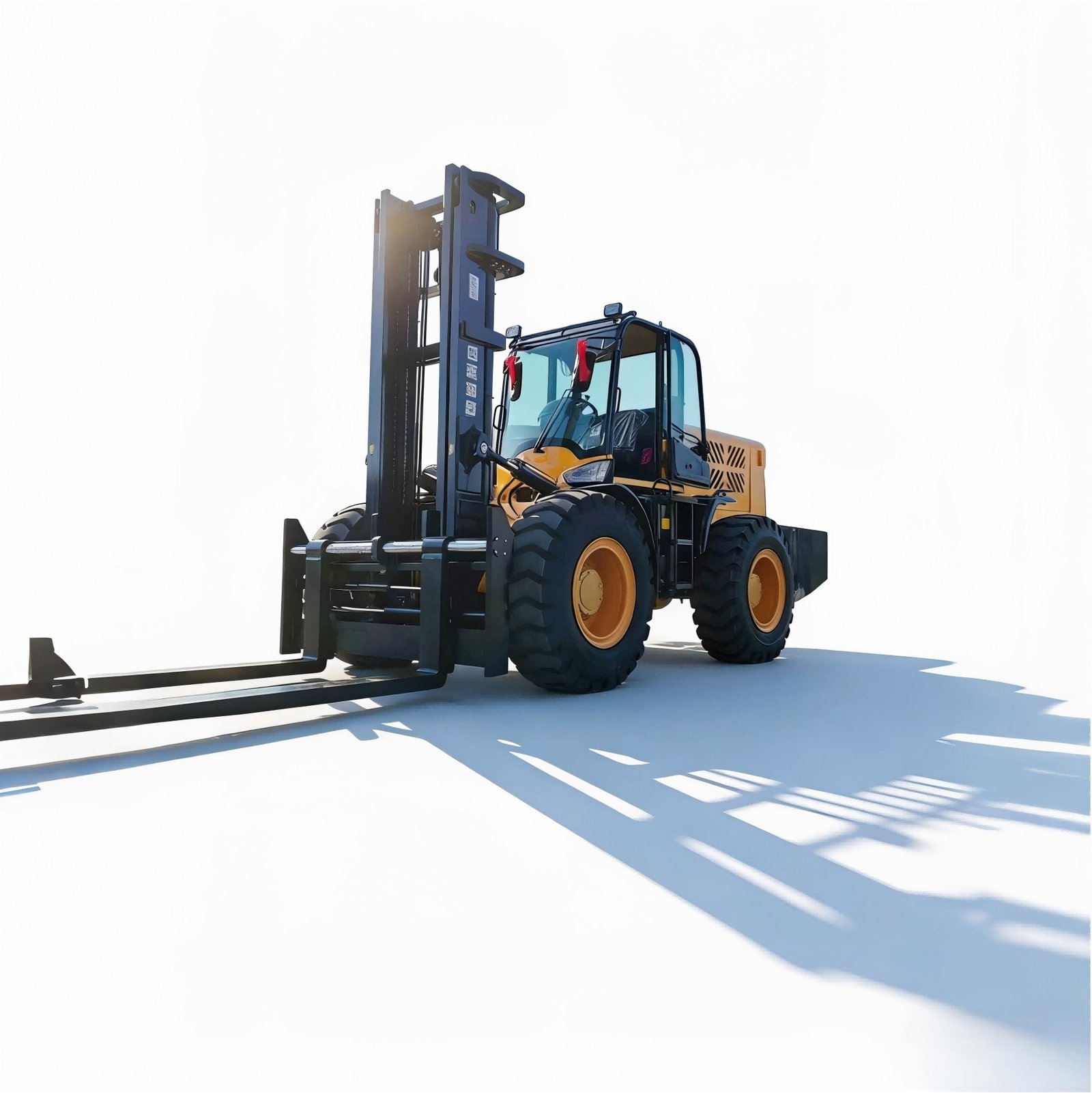 The PANDE articulated off-road forklift is a high-access, high-efficiency material handling machine that combines the structural advantages of a loader with the operational functions of a forklift. It is specifically designed for extreme terrain and heavy-duty transport needs. The entire vehicle utilizes a reinforced loader chassis, equipped with a high-powered engine, a four-wheel drive system, and oversized engineering tires, providing excellent off-road capability and strong traction. It can operate stably in harsh conditions such as mud, slopes, and gravel. Integrating a high-level air intake, dustproof cooling system, and multi-functional hydraulic controls, it ensures efficient and stable operation even in high-intensity, dusty environments. Suitable for handling large quantities of materials in complex scenarios such as sand and gravel plants, mines, construction sites, and forest areas, the PANDE articulated off-road forklift provides robust support for heavy-duty outdoor material handling with its robust performance and high reliability.